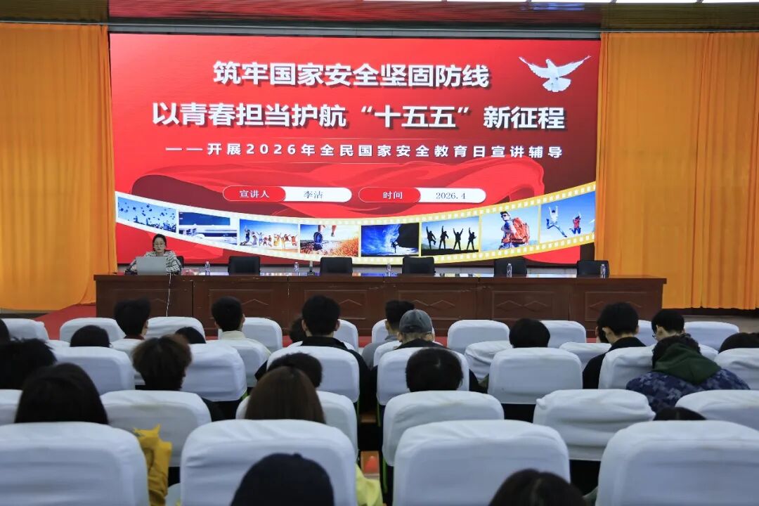 随后,马克思主义学院院长李洁主讲国家安全教育思政课,聚焦政治、网络、粮食等重点安全领域,结合鲜活案例系统讲解国家安全知识,将国家安全教育深度融入思政教育,厚植师生爱国情怀。 4月15日上午,学院组织全体师生齐聚云端,《千万师生同上一堂国家安全教育课》视频公开课。课程围绕总体国家安全观、网络安全、国土安全等重要领域,生动阐释了国家安全与青年学子的密切关联。观看过程中,同学们认真聆听、深入思考,深刻认识到国家安全不是遥远的宏大叙事,而是融入日常的责任与坚守。