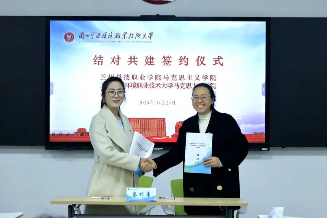 为深化思政课教学改革,提升立德树人实效。10月23日,学院党委副书记、副院长魏鹏飞,马克思主义学院党支部书记张雷磊,马克思主义学院院长李洁,以及马克思主义学院全体思政课教师赴兰州资源环境职业技术大学开展了一场富有成效的听评课教学研讨会暨集体备课交流活动,受到兰州资源环境职业技术大学党委常委、宣传部部长严昭飞,马克思主义学院党委书记康等银,马克思主义学院党委副书记、院长韩玉霞,马克思主义学院副院长姜敬良,马克思主义学院副院长杜军辉,以及马克思主义学院思政课教师代表等人的热情接待。       活动伊始,我校教师团队在兰州资源环境职业技术大学马克思主义学院领导的陪同下,首先参观了该校的思想政治教育实践教学中心。参观结束后,我校教师分组深入思政课堂进行现场听课。兰州资源环境职业技术大学的授课教师们将深厚的理论功底与鲜明的职业教育特色有机融合,通过生动的案例和丰富的互动,精彩诠释了如何将思政课“讲深、讲透、讲活”,让我校教师们深受启发。       下午3时,两校听评课教学研讨会暨集体备课交流座谈会在兰州资源环境职业技术大学文德楼1203室正式拉开帷幕。会议由兰州资源环境职业技术大学马克思主义学院党委书记康等银主持,该校党委常委、宣传部部长严昭飞致辞,他首先对我校教师一行的到来表示最热烈的欢迎,并系统介绍了兰州资源环境职业技术大学的发展历程、办学特色以及在马克思主义学院建设方面取得的成就。       随后,我校党委副书记、副院长魏鹏飞发表讲话,他首先向兰州资源环境职业技术大学的周到安排表达感谢。魏鹏飞副书记在讲话中强调,思政课是落实立德树人根本任务的关键课程,办好思政课意义重大。他指出,兰州资源环境职业技术大学作为本科院校,在马克思主义理论研究和思政课教学方面积累了丰富的经验,拥有雄厚的师资力量,非常值得我校深入学习。他希望通过此次活动,能够学习借鉴对方在理论深度、教学方法与实践环节上的先进经验;能够深入交流两校在教学中遇到的共性问题与困惑,集思广益,共同探讨解决之道;并最终通过结对共建建立长效合作机制,持续加强两校马克思主义学院的交流合作,实现资源共享、优势互补、共同发展。       在接下来的听评课研讨环节,两校教师围绕听课内容进行了评课与深度交流,现场气氛十分热烈。       活动最后,在与会人员的共同见证下,双方正式签订了《马克思主义学院结对共建协议》。此次活动是我校推进思政课改革创新、提升教师队伍能力的重要举措,不仅拓宽了我校思政课教师的教学视野,更通过结对共建为两校马克思主义学院未来的协同发展奠定了坚实基础,将共同为培养德智体美劳全面发展的社会主义建设者和接班人贡献更大力量。