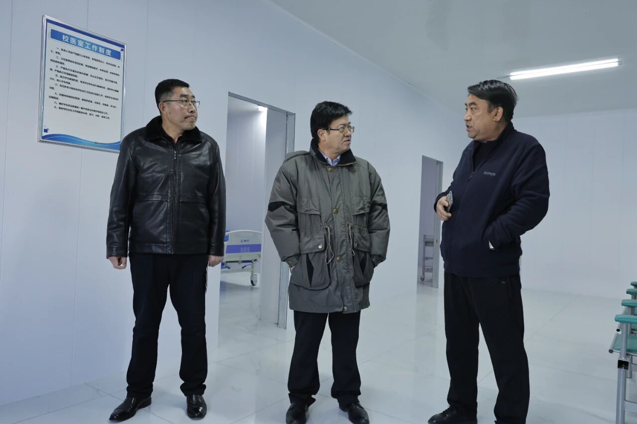 为进一步加强校园健康防控及药品安全管理,切实保障广大师生身体健康,11月18日上午,榆中县卫生健康局联合县市场监督管理局一行对学院医务室及药店开展了专项检查指导工作。院长陈佑泉、后勤服务公司经理刘小贵及相关职能部门负责人全程陪同检查。1.jpg       检查组一行首先来到学院医务室,重点查看了医务室的资质证照、医护人员配备、诊疗记录、药品采购渠道、储存条件、有效期管理以及消毒隔离措施等。陈佑泉院长向检查组详细介绍了学院医务室的基本情况、日常运行管理等方面的工作。检查组对医务室规范的管理和细致的工作给予了肯定,并就进一步优化药品管理流程、提升应急处置能力等方面提出了宝贵的指导意见。